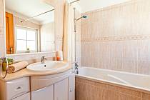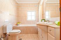 O andar superior compreende três quartos: dois quartos com cama de casal, uma suíte master com cama de casal e casa de banho privativa, bem como uma casa de banho com banheira partilhada.
