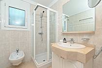 banheiro com pia, chuveiro e bidê
