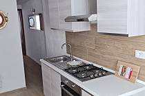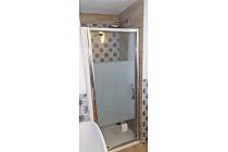 outra casa de banho, uma cozinha equipada e uma sala de estar.