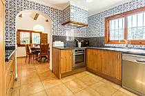 cozinha com fogão elétrico, forno elétrico, micro-ondas, máquina de lavar louça, frigorífico, cafeteira, aquecedor de agua, batedora, tostadeira e juicer